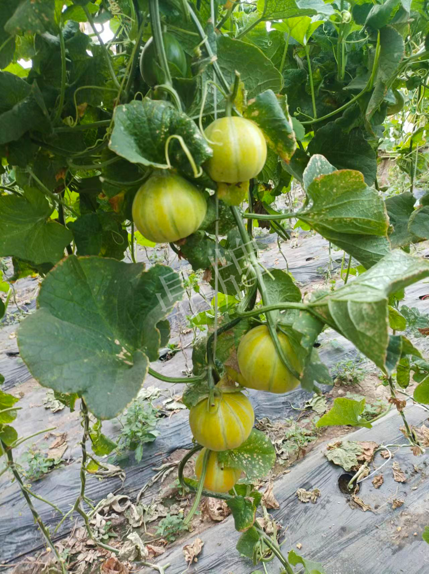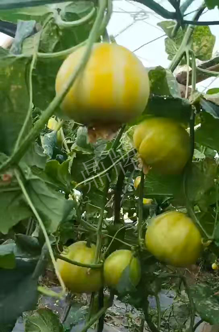 開始,我是通過網(wǎng)絡了解到“金帝”甜瓜這個品種的,圖片中的“金帝”甜瓜呈現(xiàn)流金色彩,坐果非常多??戳粞詤^(qū)種植戶也反饋,“金帝”甜瓜品質(zhì)好,甜脆多汁,售價高、很好賣。