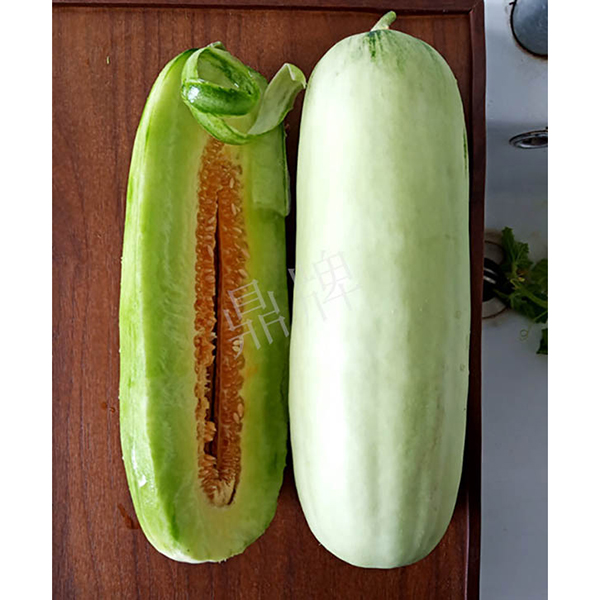 果實(shí)棒形,嫩瓜上市果長(zhǎng)23厘米左右、果徑約6厘米,果重400克左右。果皮嫩綠,肉質(zhì)乳白,沒(méi)有粗纖維,口感細(xì)膩柔軟,清香味甜。