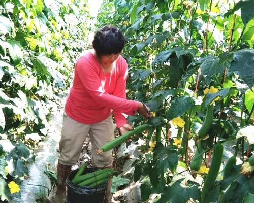 △ 劉健平夫婦大棚栽培的“優(yōu)比1號”絲瓜