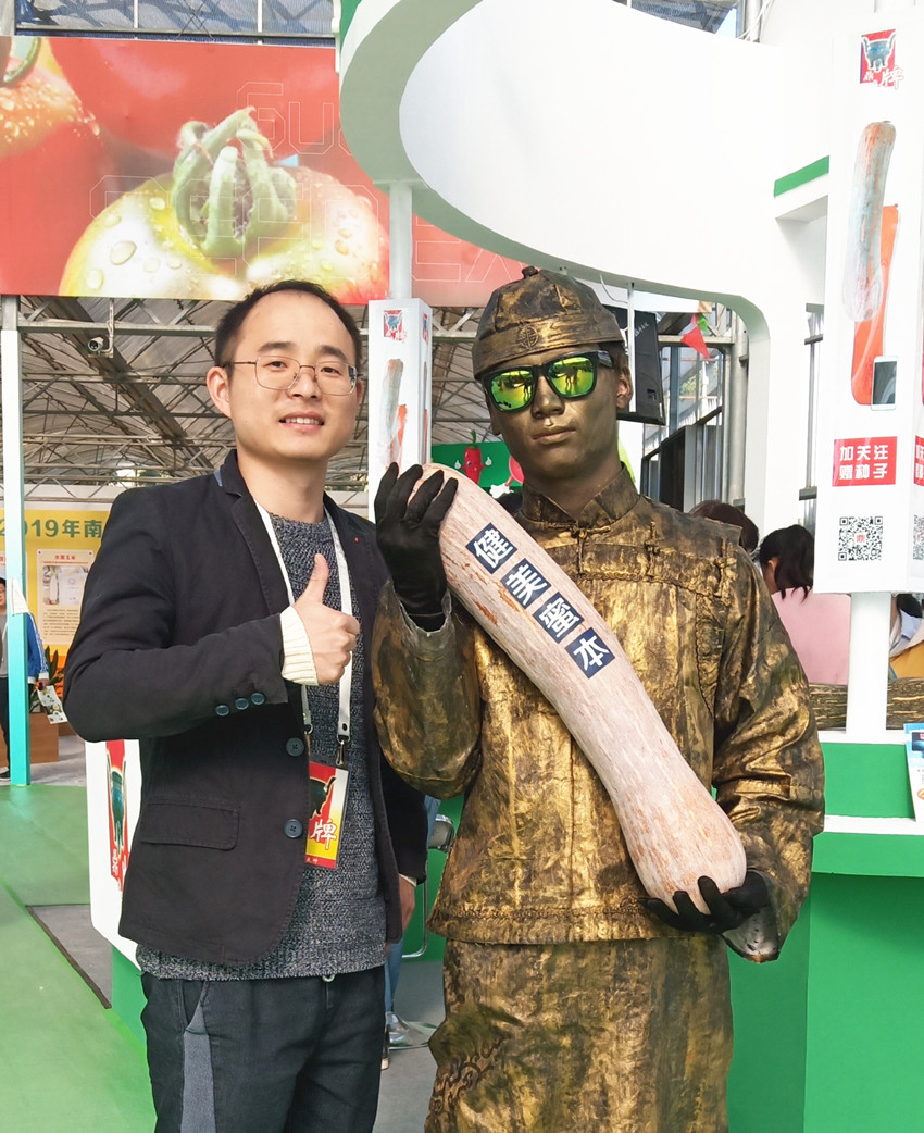 鼎牌網(wǎng)絡(luò)部袁經(jīng)理與“銅人”合影