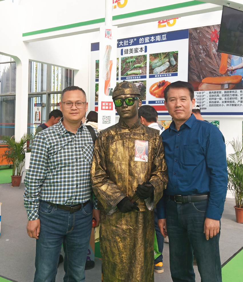 活動現(xiàn)場,鼎牌展位(A2)在展示大廳脫穎而出??蜕虃冏叩秸古_前紛紛停下腳步,被鼎牌獨創(chuàng)的“沒有大肚子的健美蜜本南瓜”所吸引。