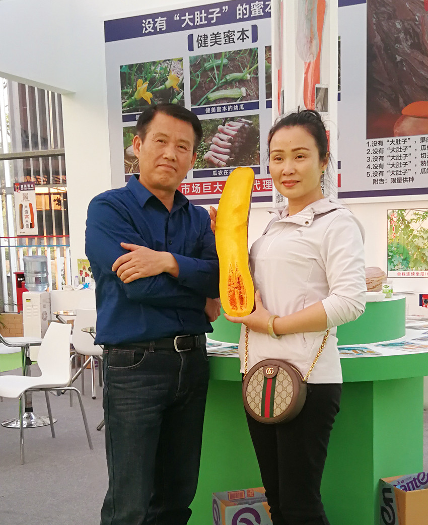 客商對“健美蜜本”南瓜充滿了興趣,特別是在品嘗生南瓜的口感后,都表示很驚訝,從來沒有吃過生南瓜,也沒有見過類似的南瓜。