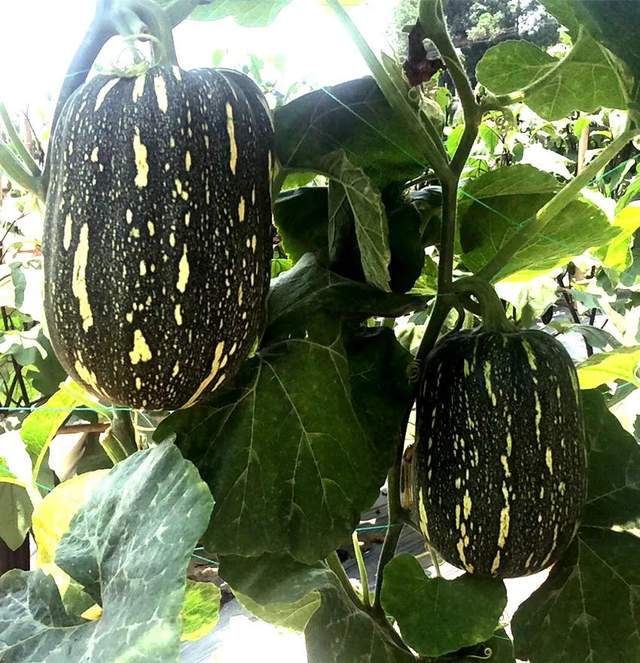 ▲ 開(kāi)始轉(zhuǎn)色的“健美蜜本”南瓜,