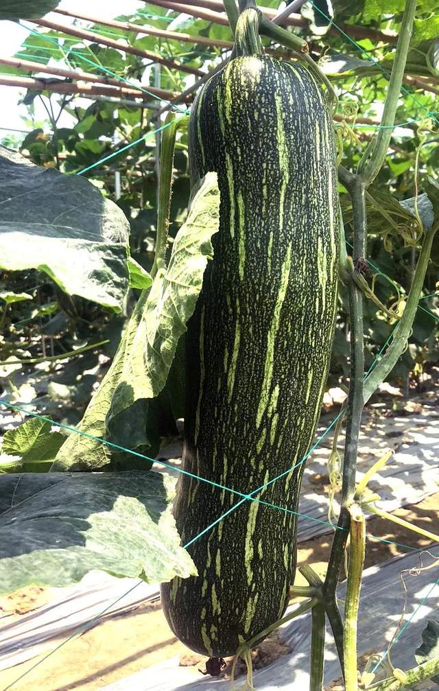 ▲ 客戶在展示“三比6號(hào)”絲瓜,