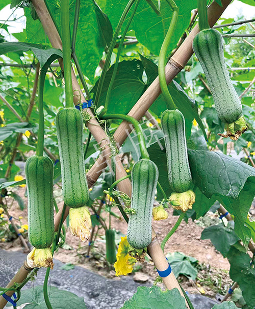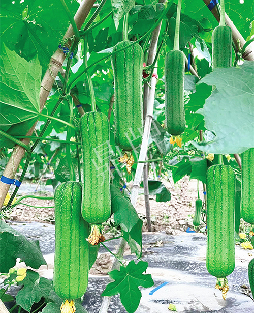 三倍體硬果絲瓜,可增產(chǎn)1倍。早熟,中棒,因坐果特多,果形、果色太美, 客戶建議改名為硬果太美。已申請(qǐng)國(guó)家新品種保護(hù)。用種:10~13袋/畝。