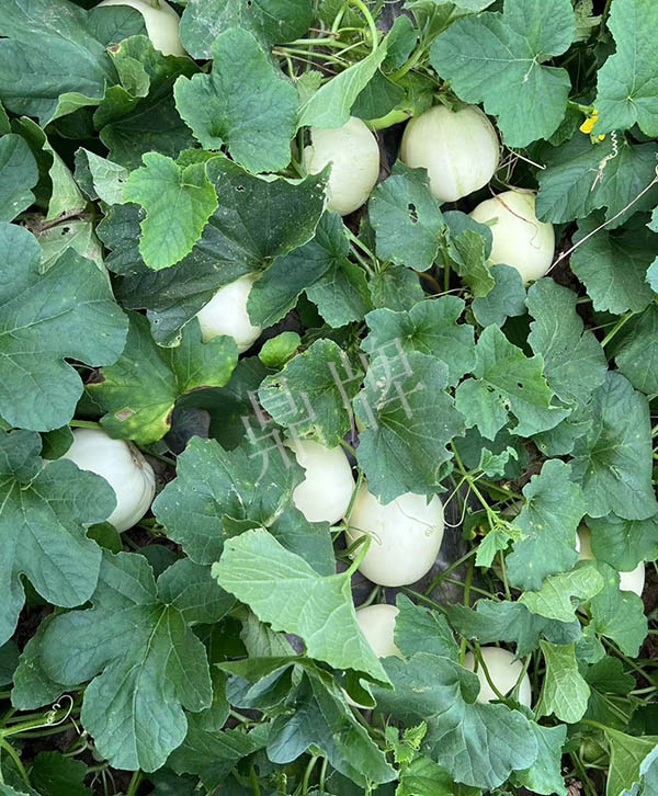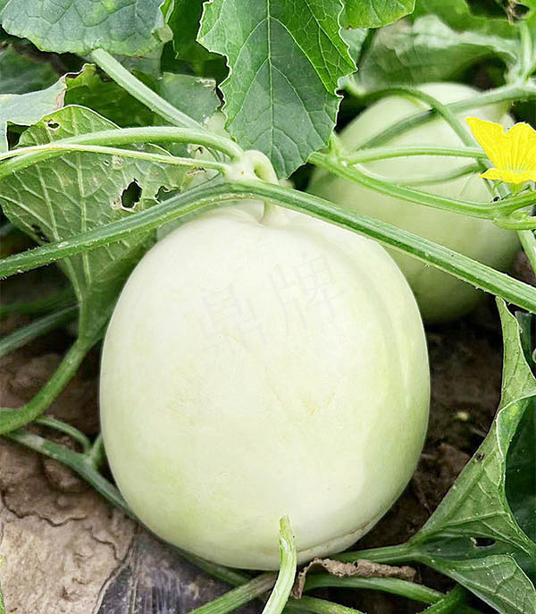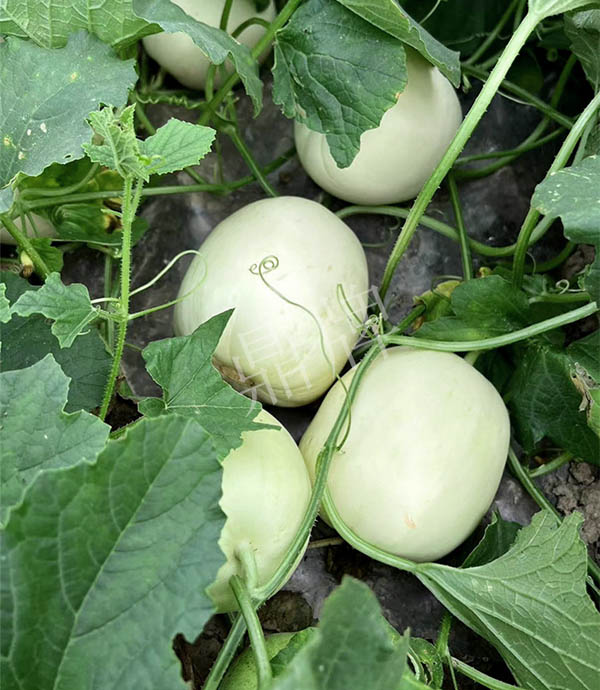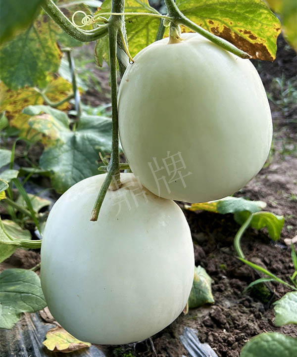 “雪奶香1號”的提高種。果皮、果肉純白色;果肉增厚,尤其是奶香更濃,甜度高達19.5度,單瓜重600克左右。爬地1~2袋/畝、吊蔓5袋/畝。